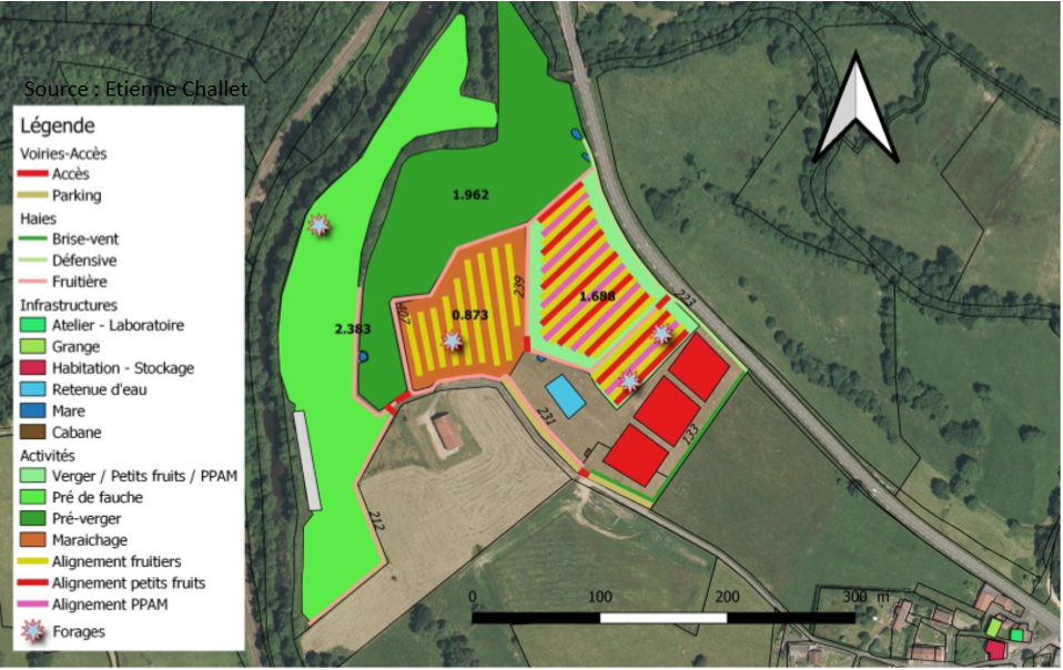 Côté écologie, afin d’améliorer la biodiversité sur sa ferme et accueillir les auxiliaires de culture, il prévoit la mise en place de 1500 m de haies, de mare, de nichoirs pour des oiseaux et des chauves-souris, de bandes fleuries et le respect des zones humides de ses parcelles de montagne.